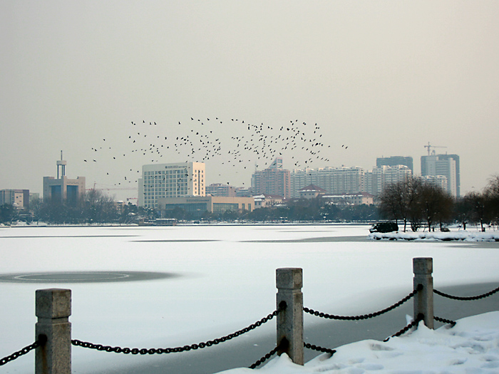 雨山湖边看雪景 |