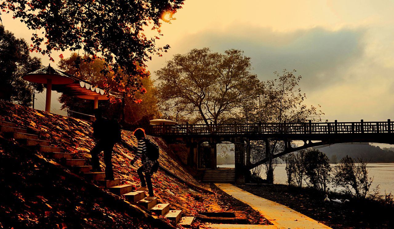 秋色湖边游人 |