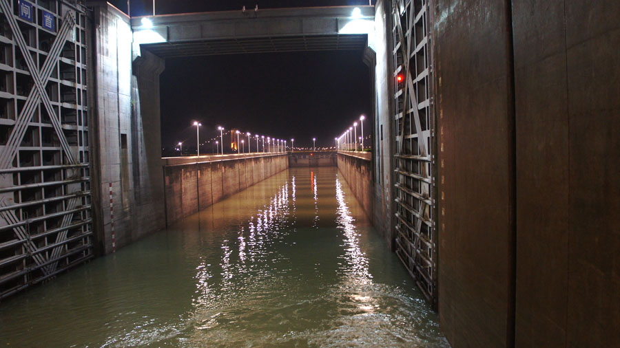三峡大坝。坛子岭。轮船过坝 |